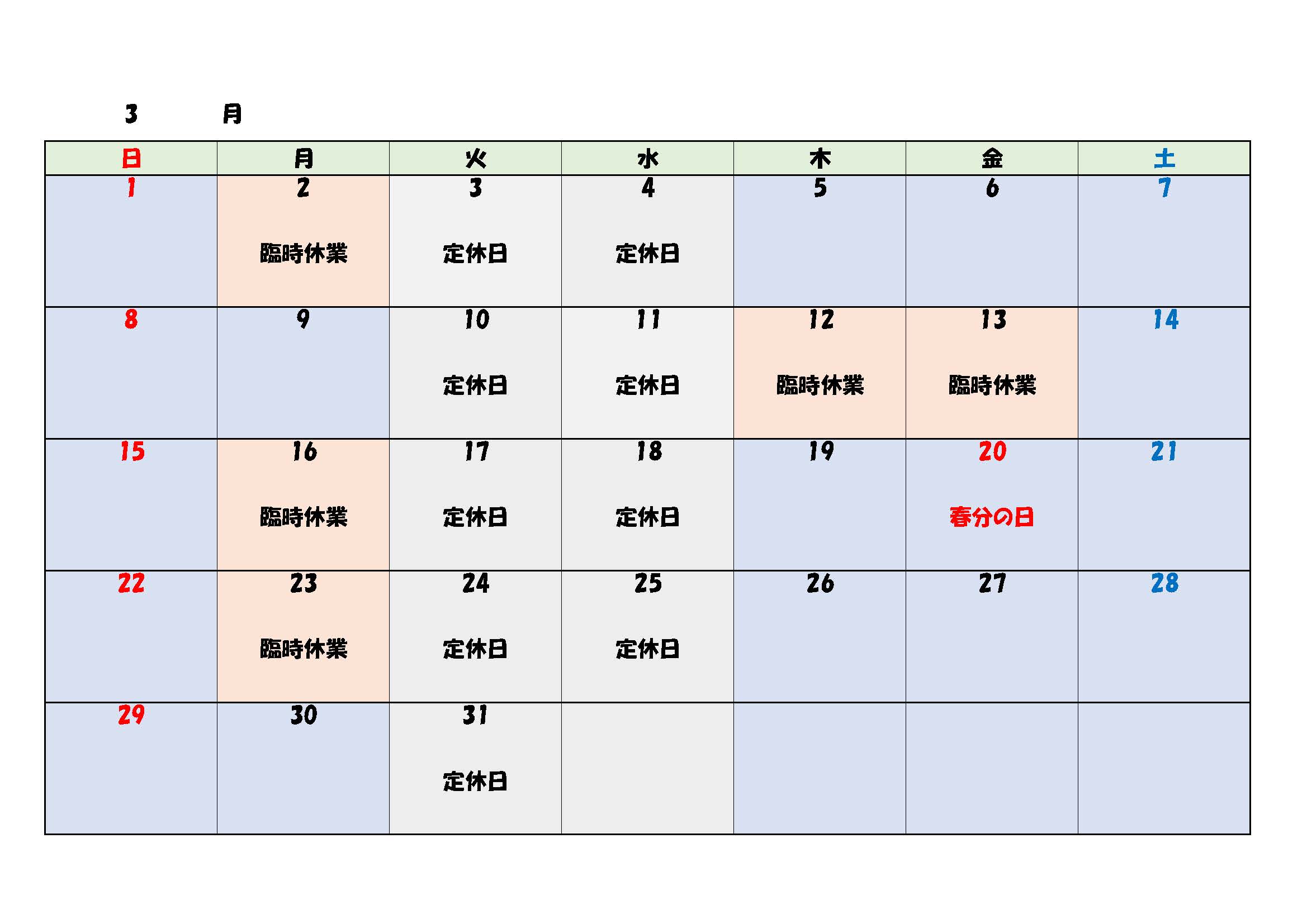 2026.03.052F富士見庵 蔵王茶屋(トムテオードロ)の3月営業は下記のとおりです。